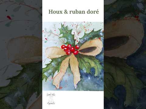 Cours Aquarelle : Carte de Vœux "Houx & Ruban Doré